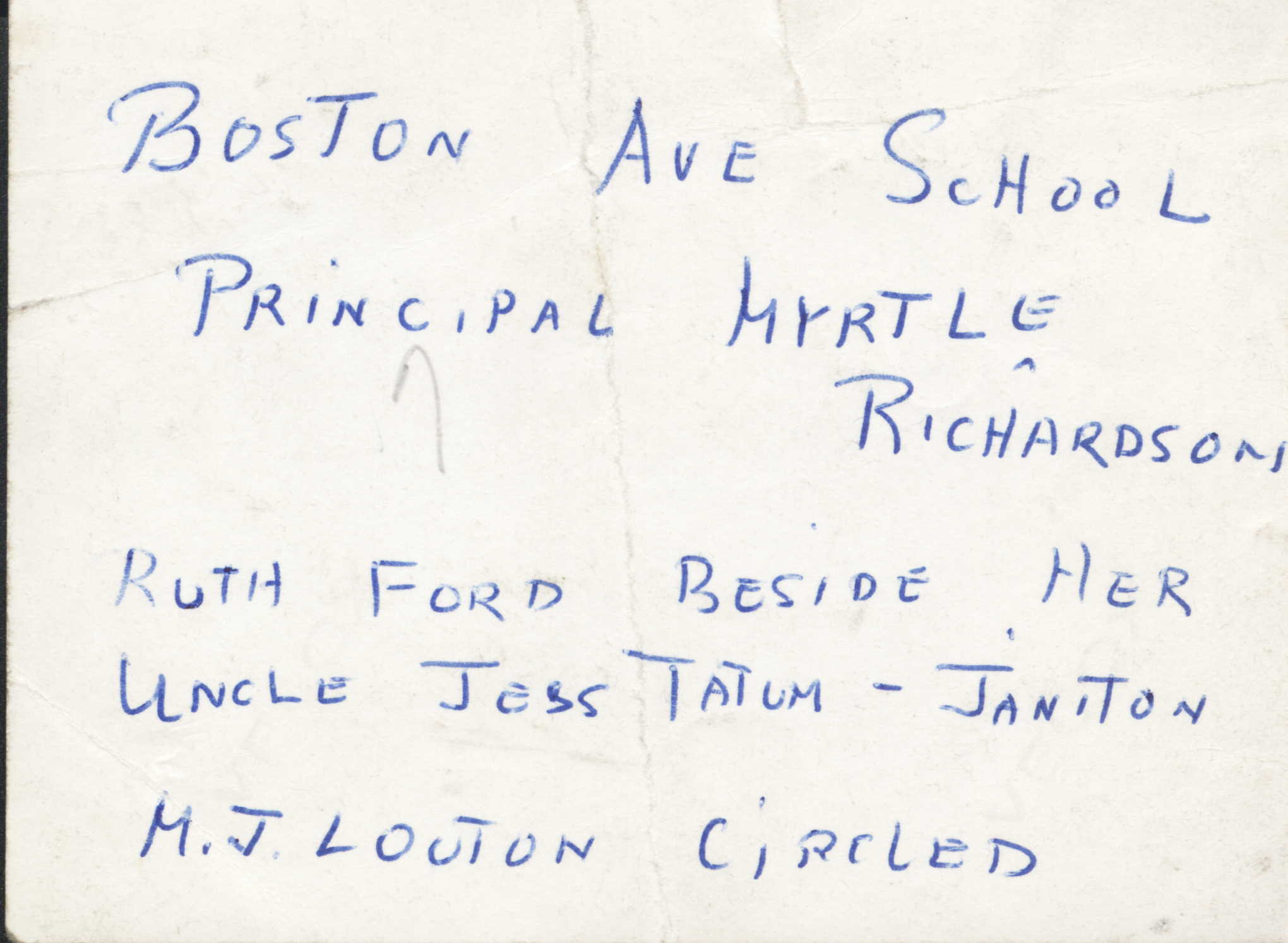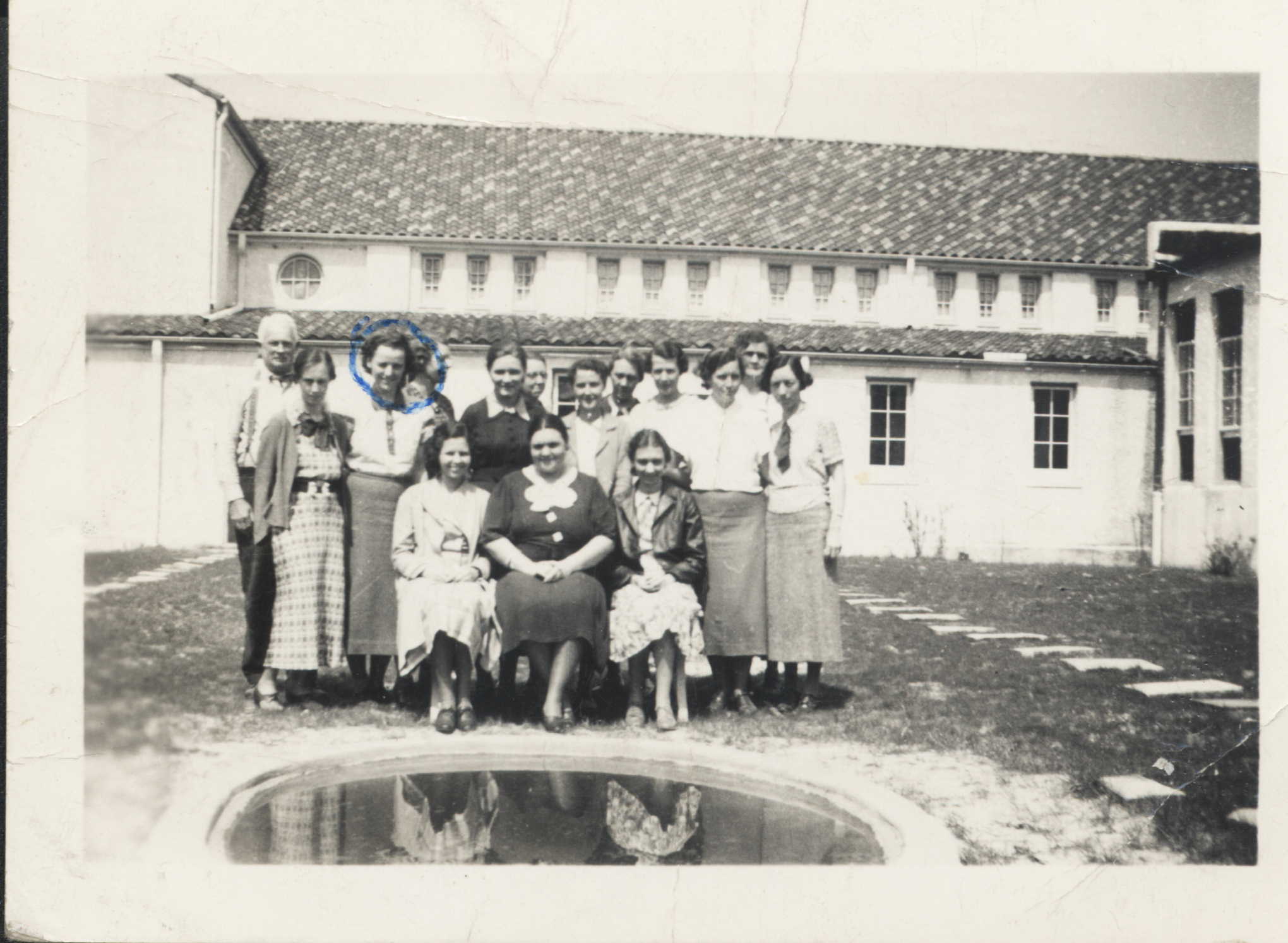 I understood that Mom first attended a sort of one-room-school. She was a very good student and at some time she attended the Boston Avenue School but see but note that the person circled is not Mom, she is the second from the left (right from our point of view) of the person who is circled.. I think, MEMORY! that she went to Boston to study at the Sargent School for Girls.