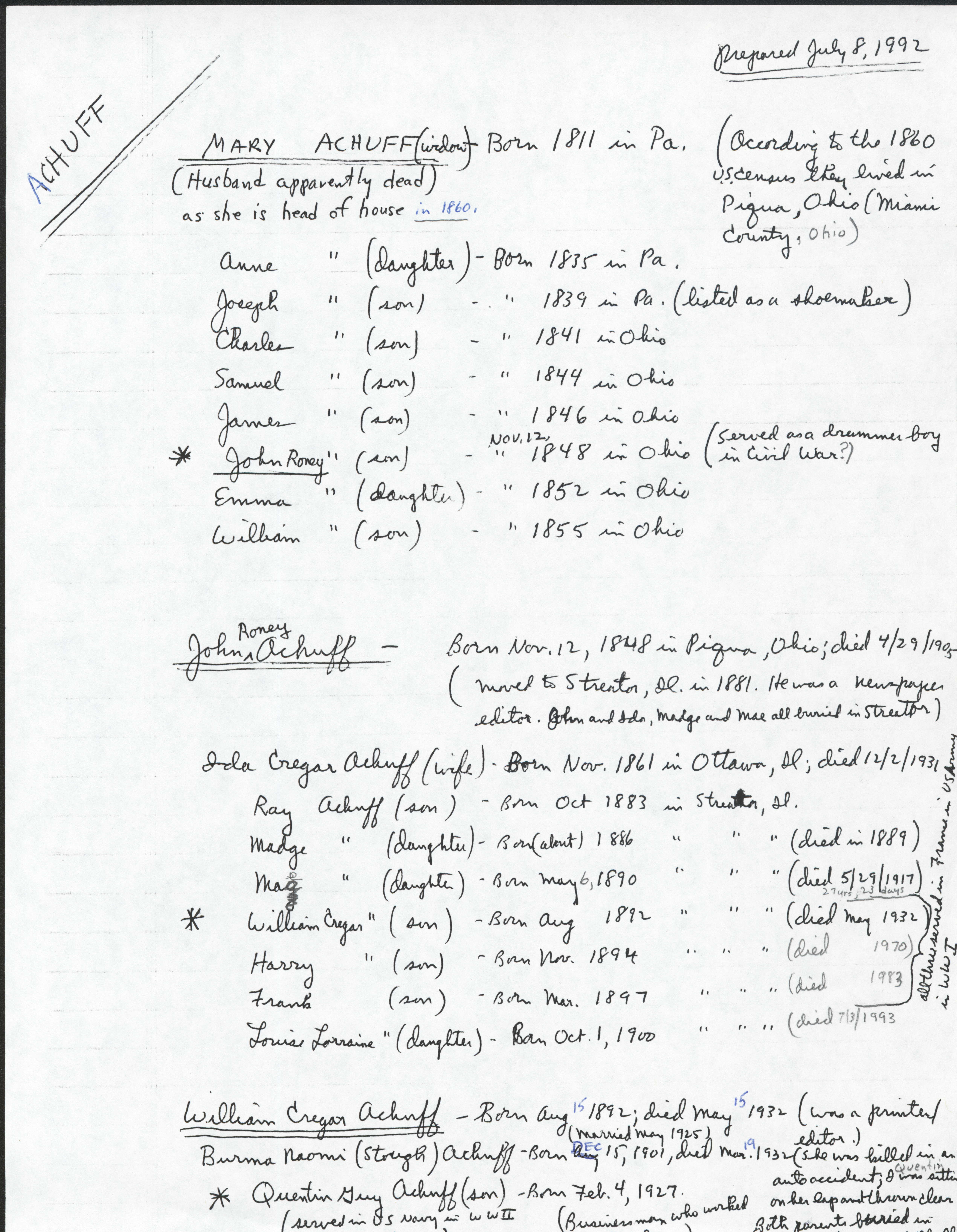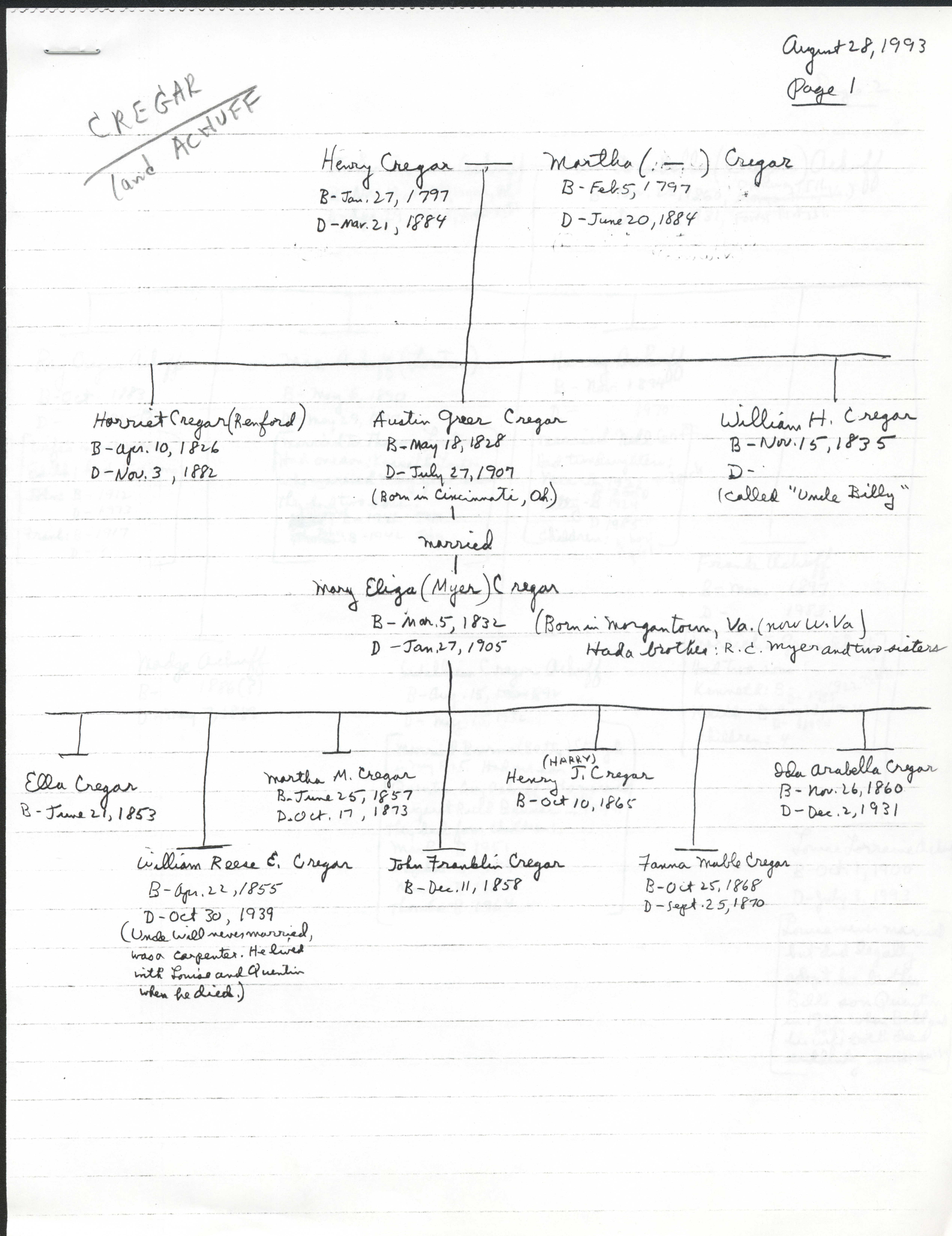Here are some family trees drawn by Quentin in the early 90s along with notes to .