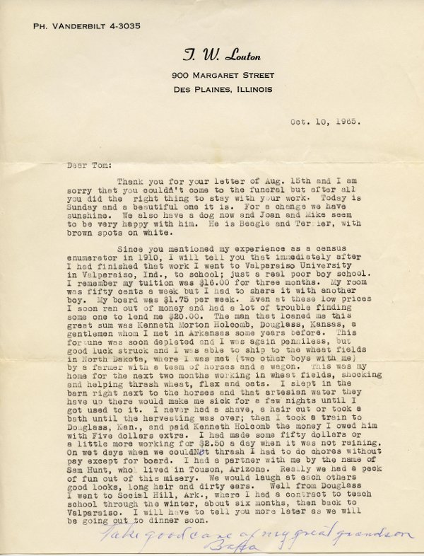 This note was writen in 1965, in response to my letter to him after Elsie passed away.