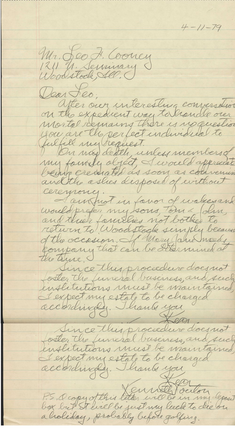 We sort of obeyed his request. We did however both show up when we heard that he was seriously failing. Further we conducted a get-to-gether and thereby some of his friends had a chance speak with us and Peter had arranged a collection of photos so one could see him at various ages. He lived in Woodstock for a bit more than 50 of his almost 90 years.