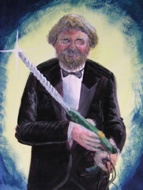 Gone but not forgotten: Tom with drill, on his way to visit Sam,