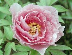 Peonies were along with mums, my mother's favorite flowers. The flower in the anchor is a Botan, the first one which flowered in my garden, 2001. However the next year it showed signs of being weak, had one flower, but from the roots, Peonie lactoflora leaves sprouted and now we have a a normal unfilled white peony. |